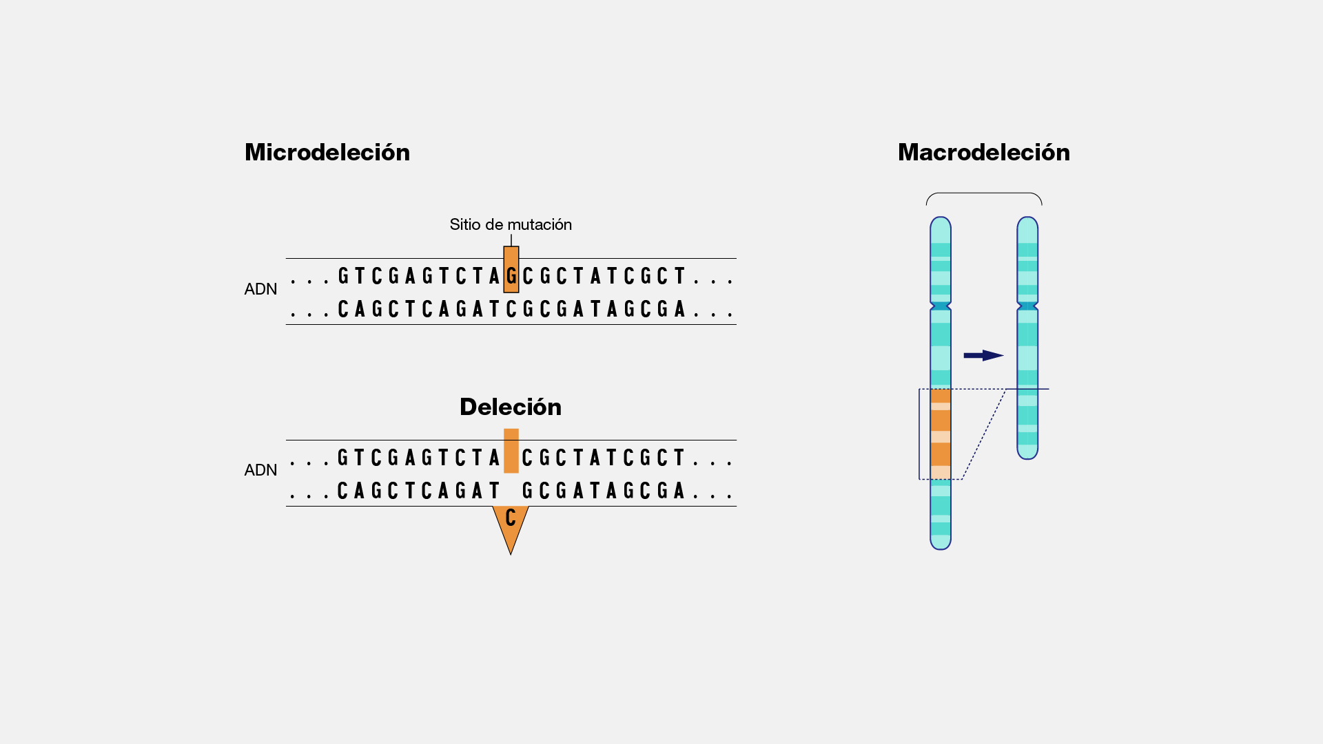 Una deleción significa que algo falta. Y para un genetista, una deleción significa que falta algo del material genético. Y puede ser algo pequeño e involucre sólo un par de bases, o puede ser algo más grande. Puede ser un fragmento de un gen, o incluso un gen entero. O todavía más grande y ser una parte de un cromosoma. Dependiendo de lo que sea, hay que mirarlo de distintas maneras. Tu puedes encontrar una deleción en el cromosoma con un análisis cromosómico o citogenético, pero una supresión de un gen la deberás observar mediante la secuenciación del ADN. Y cuando tienes una deleción, dependiendo del tamaño, verás efectos diferentes. Lo que es más sorprendente para mí es que una deleción de sólo un par de bases puede causar el defecto congénito más grave, y a veces la falta de un cromosoma entero no provoca muchos más problemas que tener sólo una deleción de un par de bases pequeñas. Deleciones diferentes pueden conducir a consecuencias diferentes; pueden afectar a la conducta, al aspecto de un niño, pueden crear un problema muy severo que haga que niño muera al nacer, o afectar a algo que sólo influya con el color de ojos, el color de pelo, el peso o la altura de la persona.